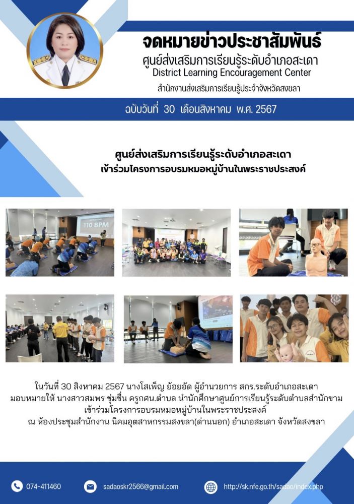 ศูนย์ส่งเสริมการเรียนรู้ระดับอำเภอสะเดา เข้าร่วมโครงการอบรมหมอหมู่บ้านในพระราชประสงค์