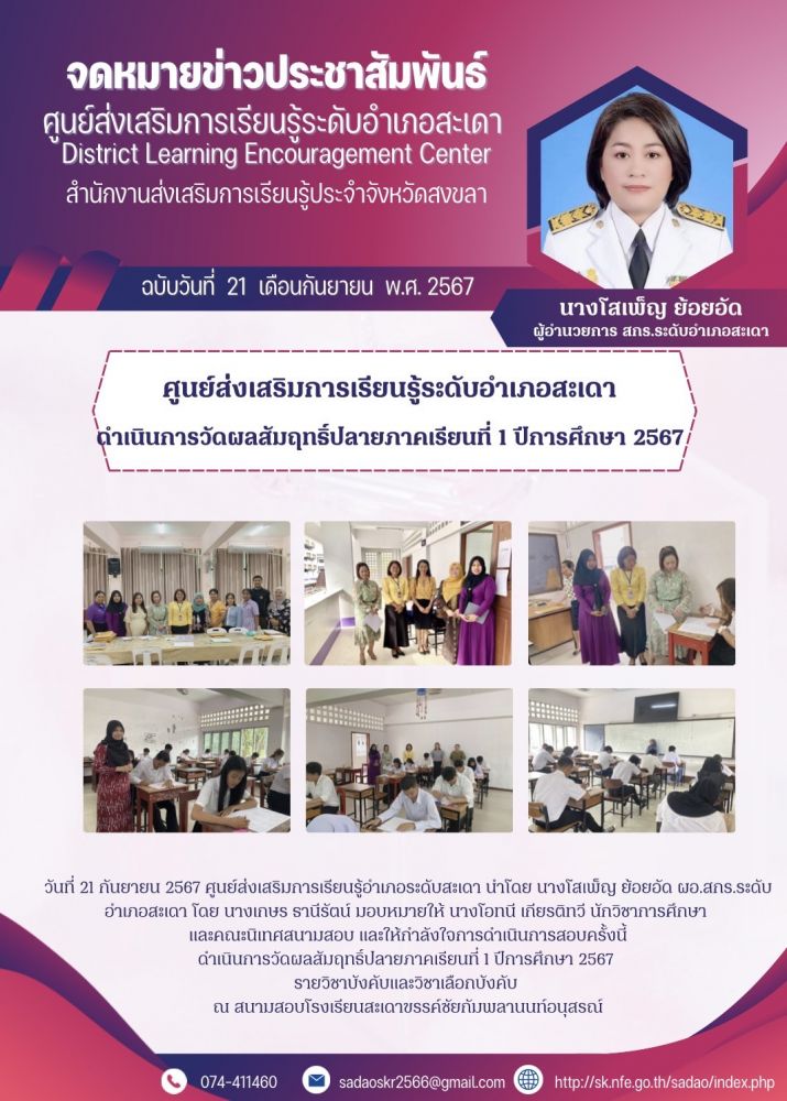 ศูนย์ส่งเสริมการเรียนรู้ระดับอำเภอสะเดา ดำเนินการวัดผลสัมฤทธิ์ปลายภาคเรียนที่ 1 ปีการศึกษา 2567