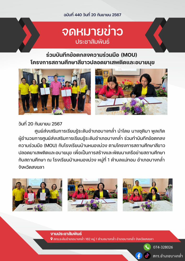 ร่วมบันทึกข้อตกลงความร่วมมือ (MOU) โครงการสถานศึกษาสีขาวปลอดยาเสพติดและอบายมุข