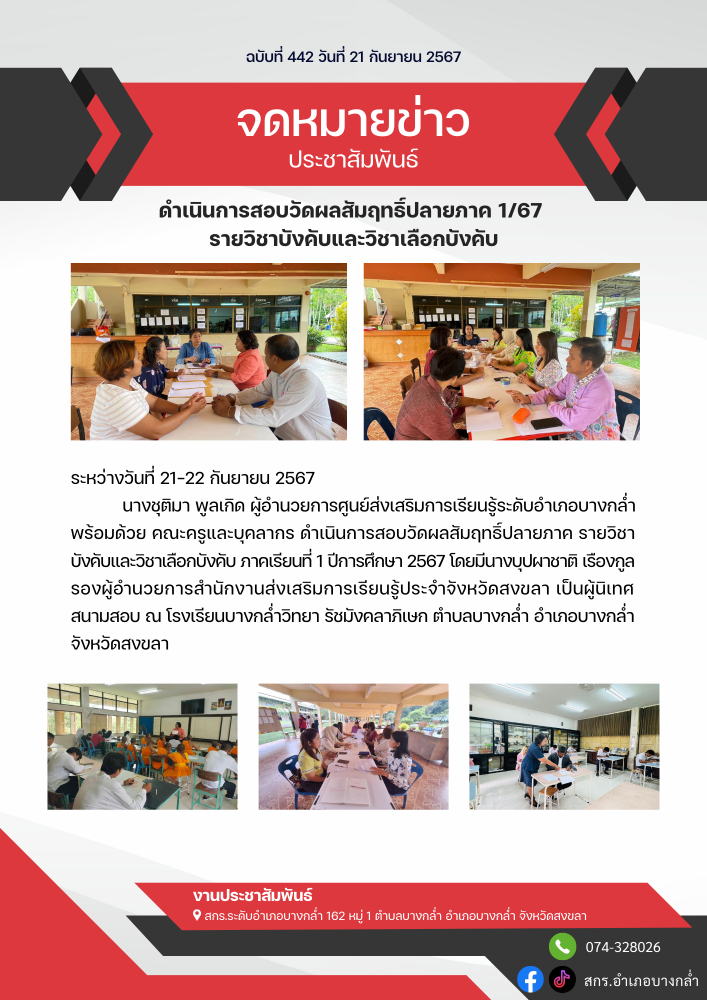 ดำเนินการสอบวัดผลสัมฤทธิ์ปลายภาค 1/67 รายวิชาบังคับและวิชาเลือกบังคับ