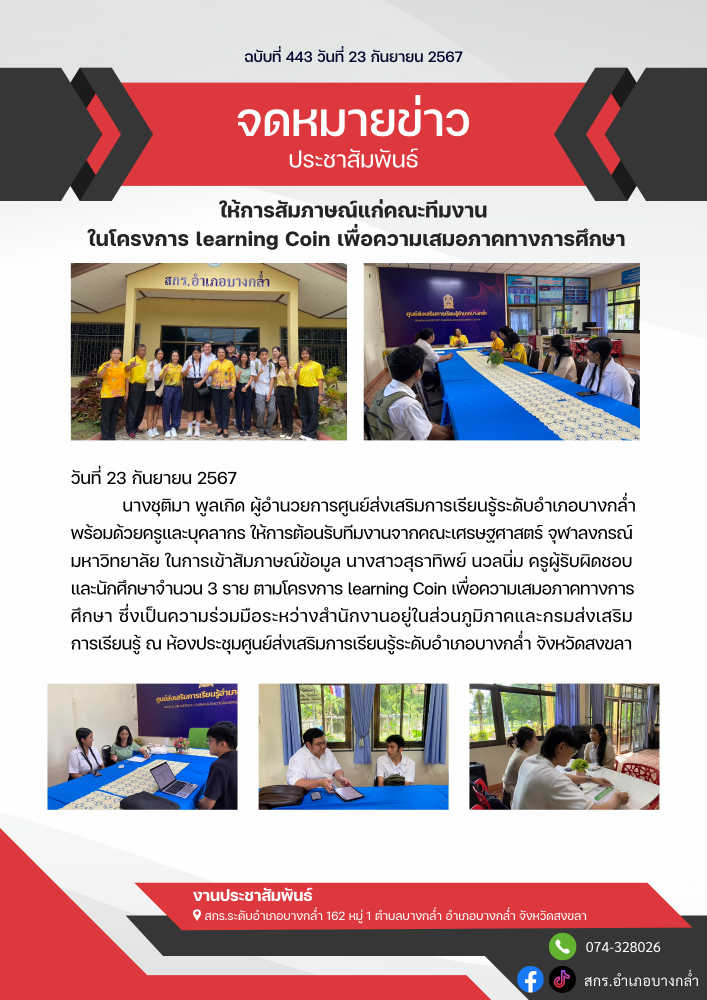 ให้การสัมภาษณ์แก่คณะทีมงาน ในโครงการ learning Coin เพื่อความเสมอภาคทางการศึกษา