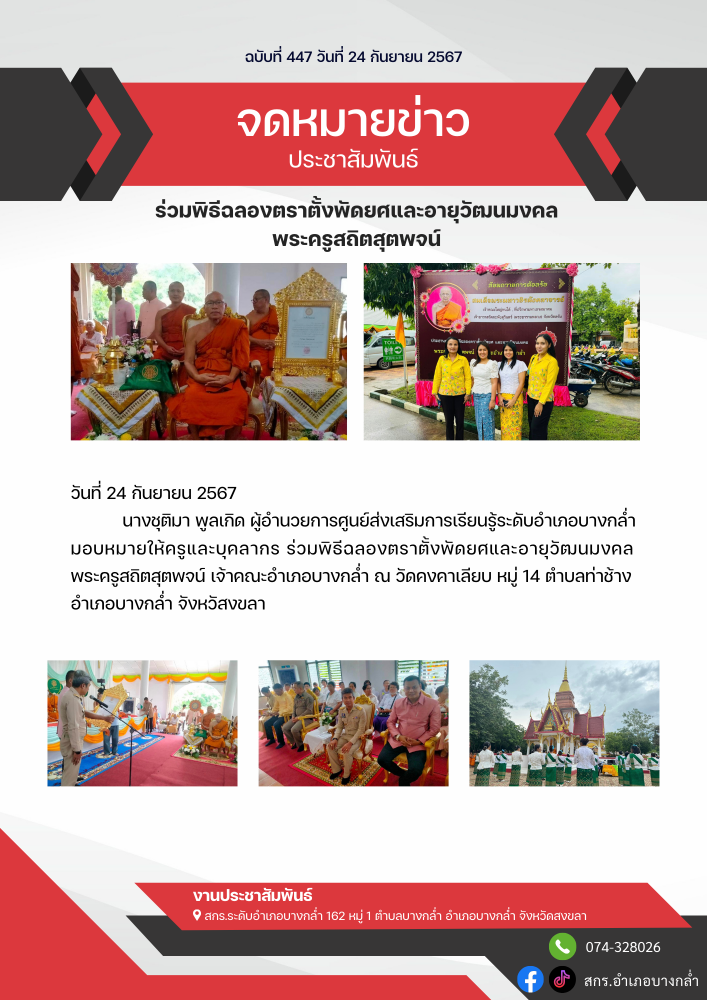 ร่วมพิธีฉลองตราตั้งพัดยศและอายุวัฒนมงคล พระครูสถิตสุตพจน์