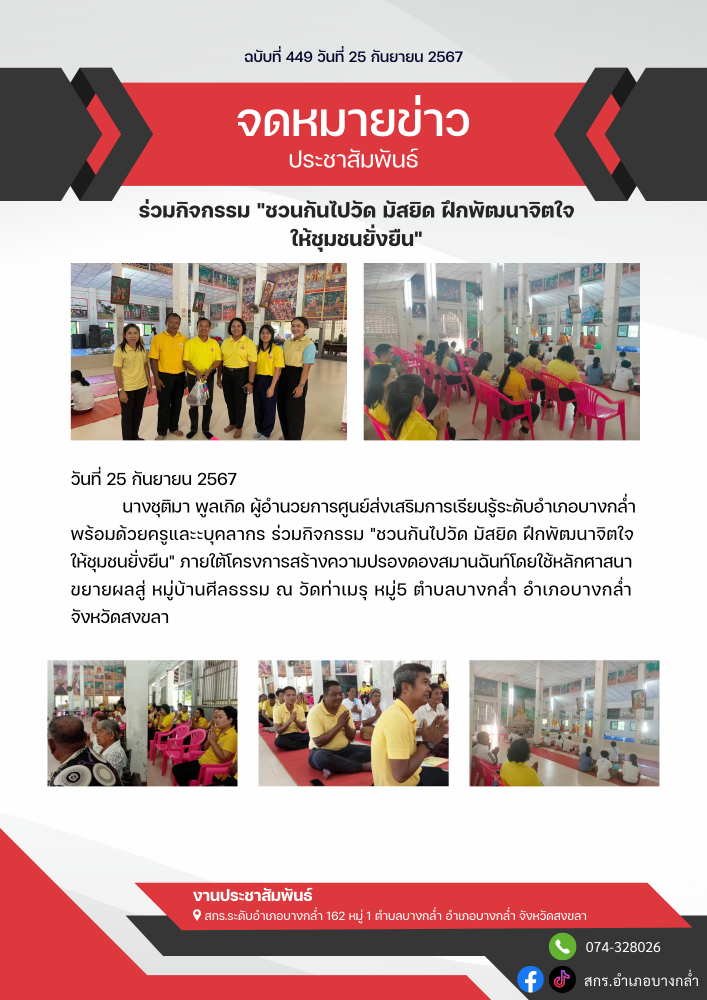 ร่วมกิจกรรม \"ชวนกันไปวัด มัสยิด ฝึกพัฒนาจิตใจ ให้ชุมชนยั่งยืน\"