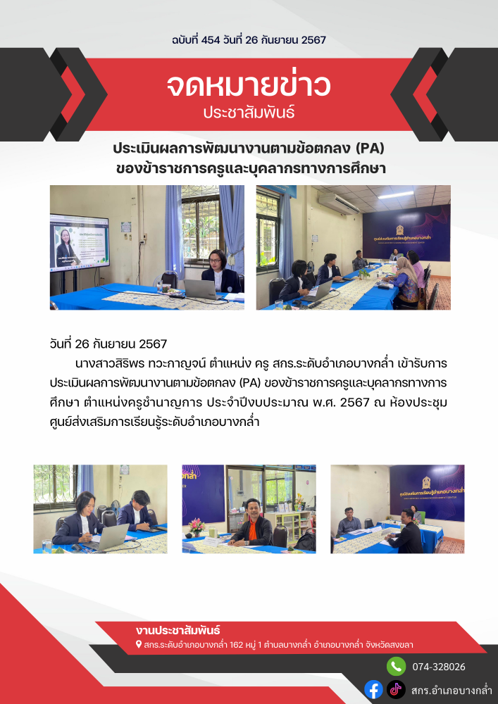 เข้ารับการ ประเมินผลการพัฒนางานตามข้อตกลง (PA) ของข้าราชการครูและบุคลากรทางการ ศึกษา