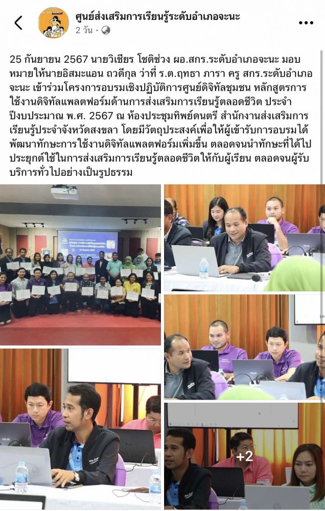 ข้าร่วมโครงการอบรมเชิงปฏิบัติการศูนย์ดิจิทัลชุมชน หลักสูตรการใช้งานดิจิทัลแพลตฟอร์มด้านการส่งเสริมการเรียนรู้ตลอดชีวิต ประจำปีงบประมาณ พ.ศ. 2567