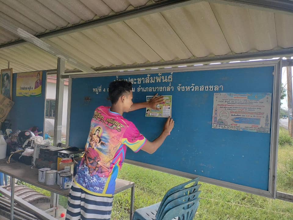 นางชุติมา พูลเกิด ผู้อำนวยการศูนย์ส่งเสริมการเรียนรู้ระดับอำเภอบางกล่ำ มอบหมายให้ นายชอบ สุวรรณชาตรี ครู กศน.ตำบล ลงพื้นที่ประชาสัมพันธ์และ