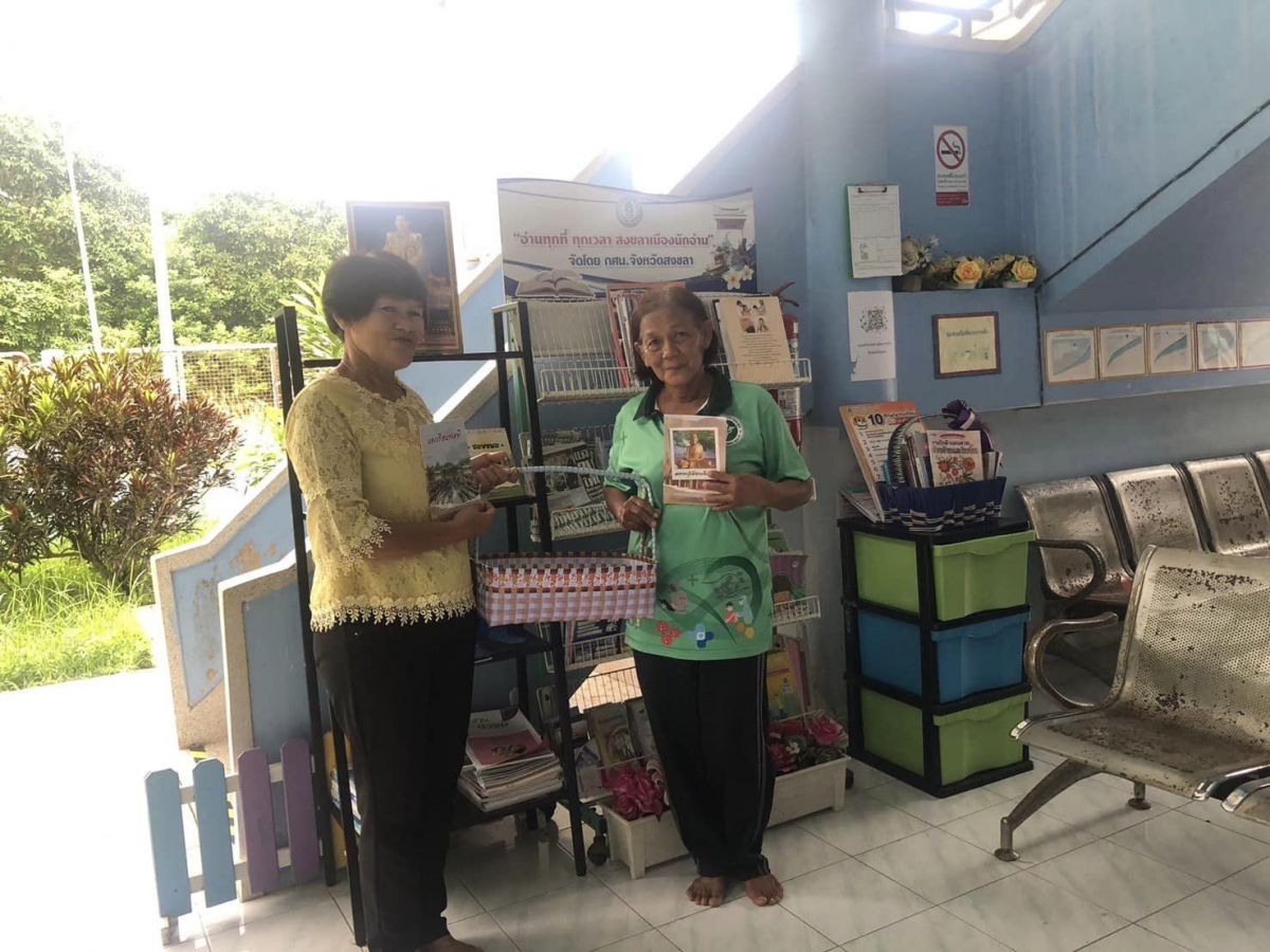 นางชุติมา พูลเกิด ผู้อำนวยการศูนย์ส่งเสริมการเรียนรู้ระดับอำเภอบางกล่ำ มอบหมายให้ นางลำพึง สุวรรณชาตรี ครู กศน.ตำบล นำหนังสือวรรณกรรม