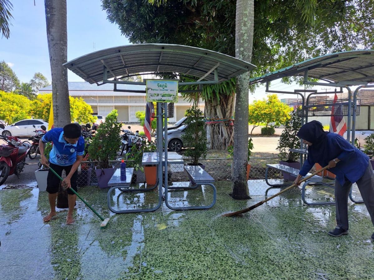 นางถนอมพร อารมณ์เย็น ข้าราชการครู พร้อมด้วยบุคลากรในสังกัด สกร.ระดับอำเภอรัตภูมิ ดำเนินกิจกรรม Big Clearning Day และ กิจกรรม 5 ส. เพื่อปรับภูมิทัศน์ภายในและภายนอกสำนักงาน