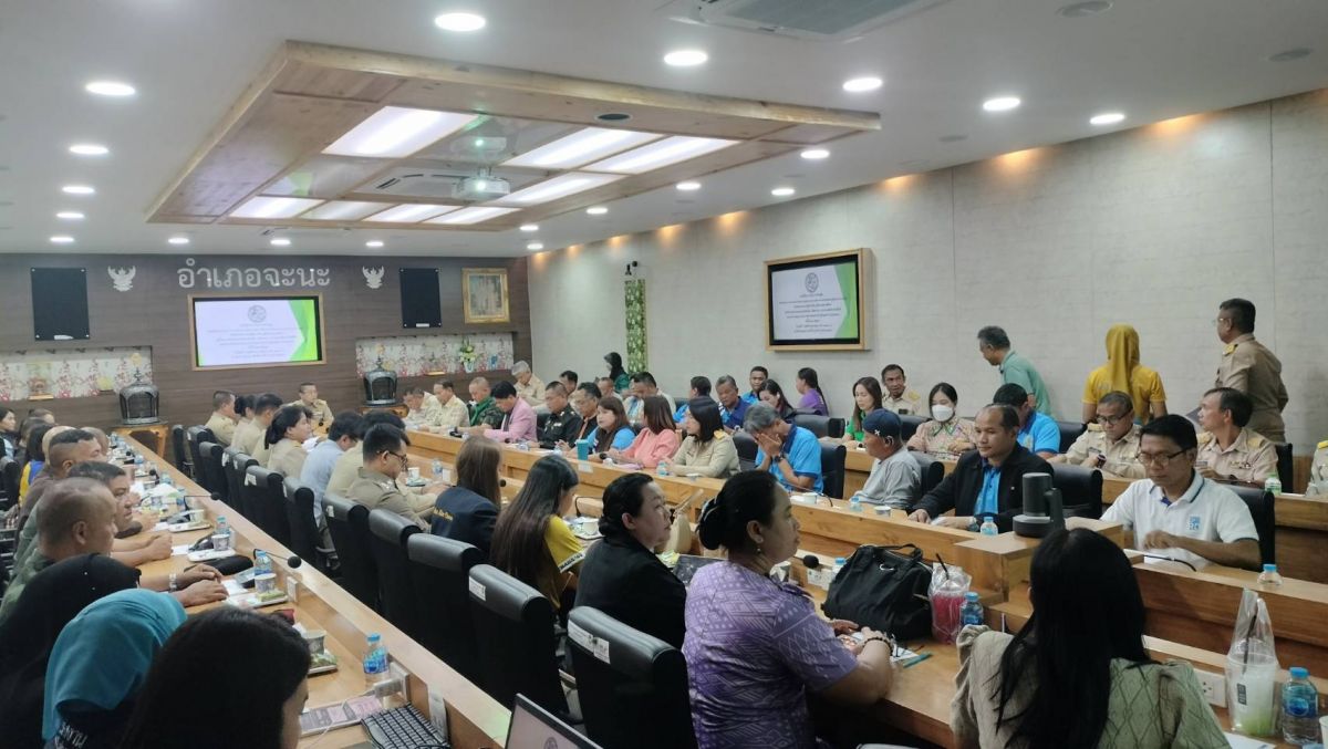 วันที่ 6 พฤศจิกายน 2567 นางจีรวรรณ์ ปัตตพัฒน์ ผู้อำนวยการศูนย์ส่งเสริมการเรียนรู้ระดับอำเภอจะนะ มอบหมาย ให้ นายอิสมะแอน ถวดีกุล ตำแหน่ง ครู เข้าร่วมประชุมหัวหน้าส่วนราชการอำเภอ คณะกรรมการบริหารงานอำเภอแบบบูรณาการ (ก.บ.อ.) หัวหน้าหน่วยงานรัฐวิสาหกิจ ผู้บริหารสถานศึกษา ผู้บริหารองค์กรปกครองส่วนท้องถิ่น ปลัดอำเภอ ประธานเครือข่ายในพื้นที่ และประธานคณะกรรมการบริหารชมรมกำนัน ผู้ใหญ่บ้าน อำเภอจะนะ โดยมี นายกฤชณัทท พลรัตน์ นายอำเภอจะนะ เป็นประธานการประชุม มีตัวแทนหน่วยงานต่างๆเข้าร่วมประชุมโดยพร้อมเพรียงกัน ณ ห้องประชุมชวาวงศ์ ชั้น 2 ที่ว่าการอำเภอจะนะ จังหวัดสงขลา มีวาระการประชุมที่สำคัญเกี่ยวกับการแจ้งแผนการดำเนินงานกิจกรรมจิตอาสาพระราชทาน เราทำความดีด้วยหัวใจ อำเภอจะนะ จังหวัดสงขลา ประจำเดือนพฤศจิกายน 2567 การเฝ้าระวังและการรายงานสถานการณ์ความมั่นคงในพื้นที่ และเน้นย้ำให้หน่วยงานต่างๆเฝ้าระวังและเตรียมความพร้อมหากเกิดอุทกภัยตามประกาศเตือนภัยของกรมอุตุนิยมวิทยาเกี่ยวกับร่องมรสุมพาดผ่านภาคใต้ตอนล่าง ทำให้เกิดฝนตกหนักในช่วงวันที่ 5-6 พฤศจิกายน 2567 นี้