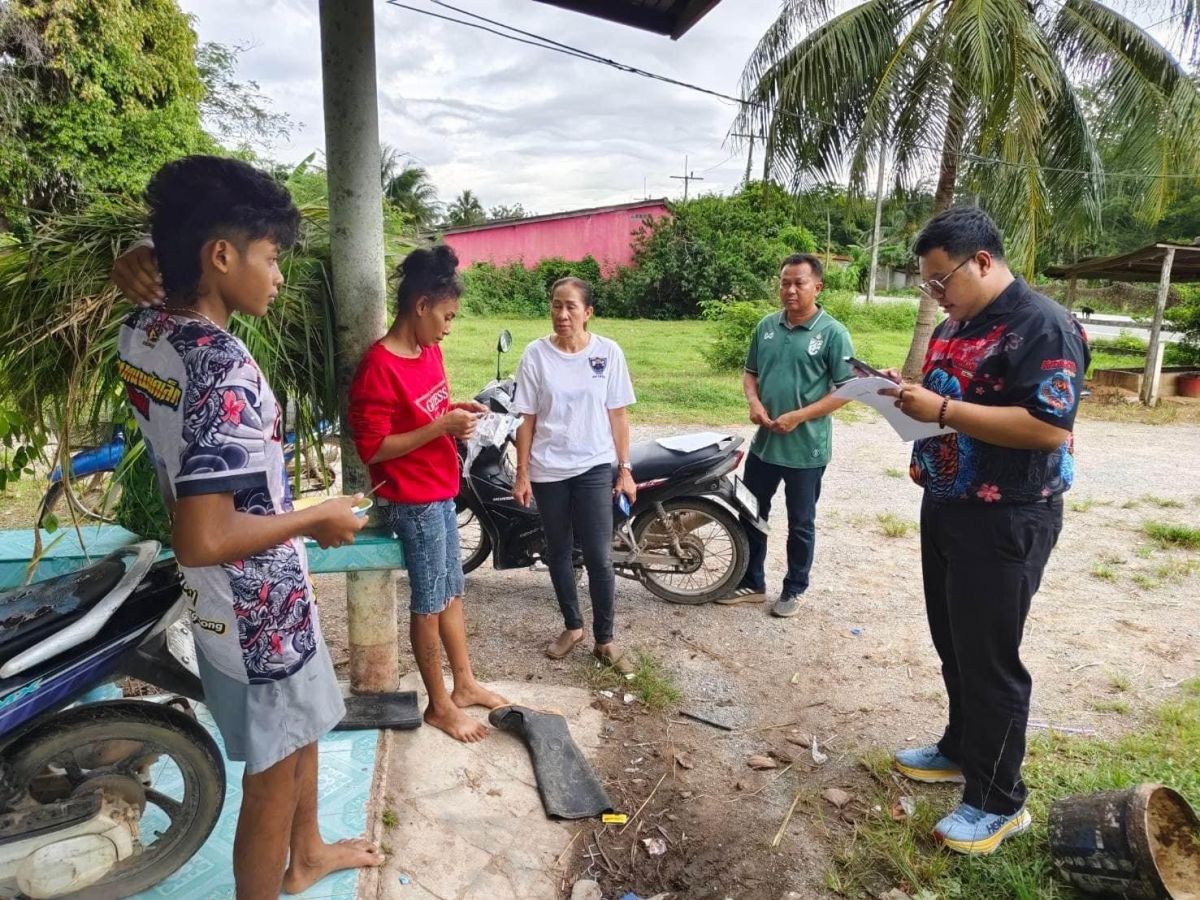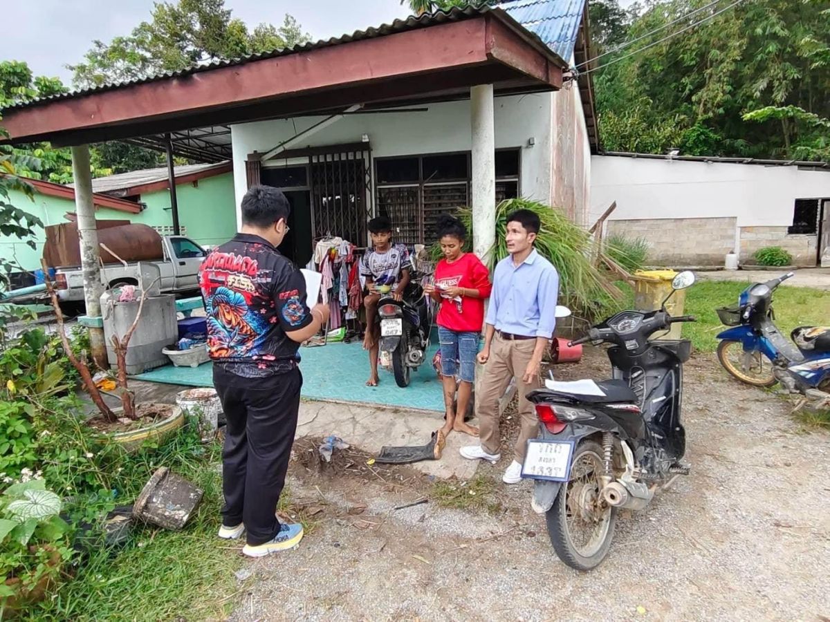 นายพุทธพร รัตนอุไร ครูกศน.ตำบลเเละนายนพวิชญ์ ไชยชนะ ครูผู้สอนคนพิการ ลงพื้นที่สำรวจติดตามเด็กและเยาวชนอายุ 6-18 ปีที่หลุดออกจากระบบการศึกษา (Dropout)