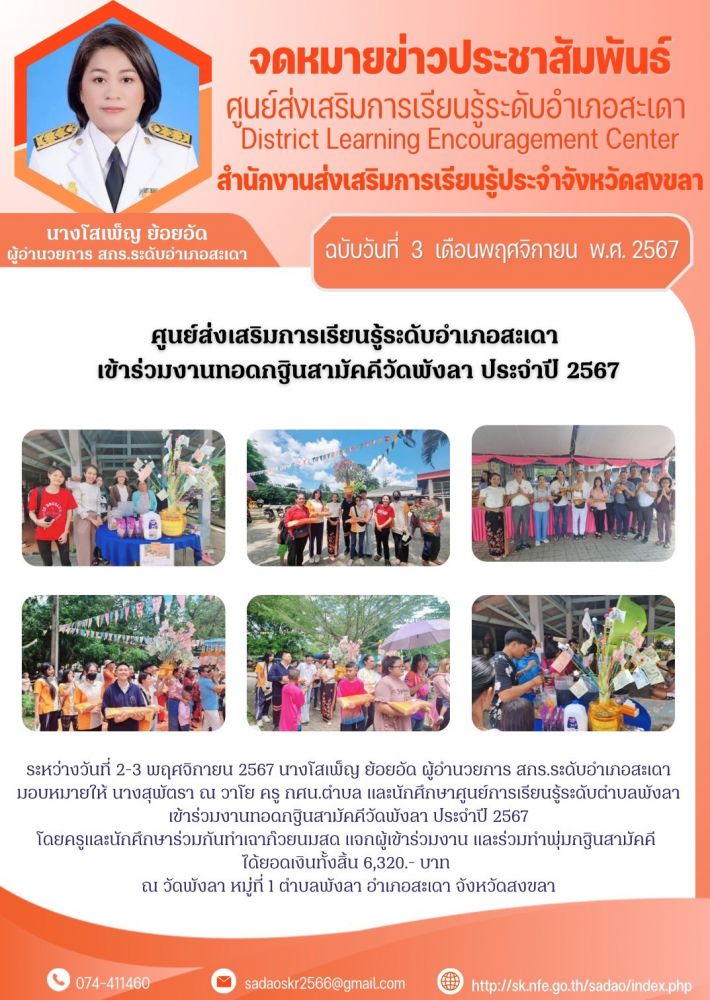 ศูนย์ส่งเสริมการเรียนรู้ระดับอำเภอสะเดา เข้าร่วมงานทอดกฐินสามัคคีวัดพังลา ประจำปี 2567