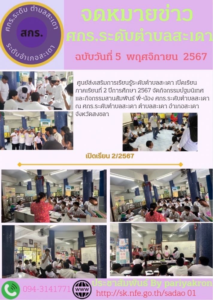 ศูนย์ส่งเสริมการเรียนรู้ระดับอำเภอสะเดา จัดกิจกรรมปฐมนิเทศ และกิจกรรมสานสัมพันธ์ พี่-น้อง ศกร.ระดับตำบลสะเดา