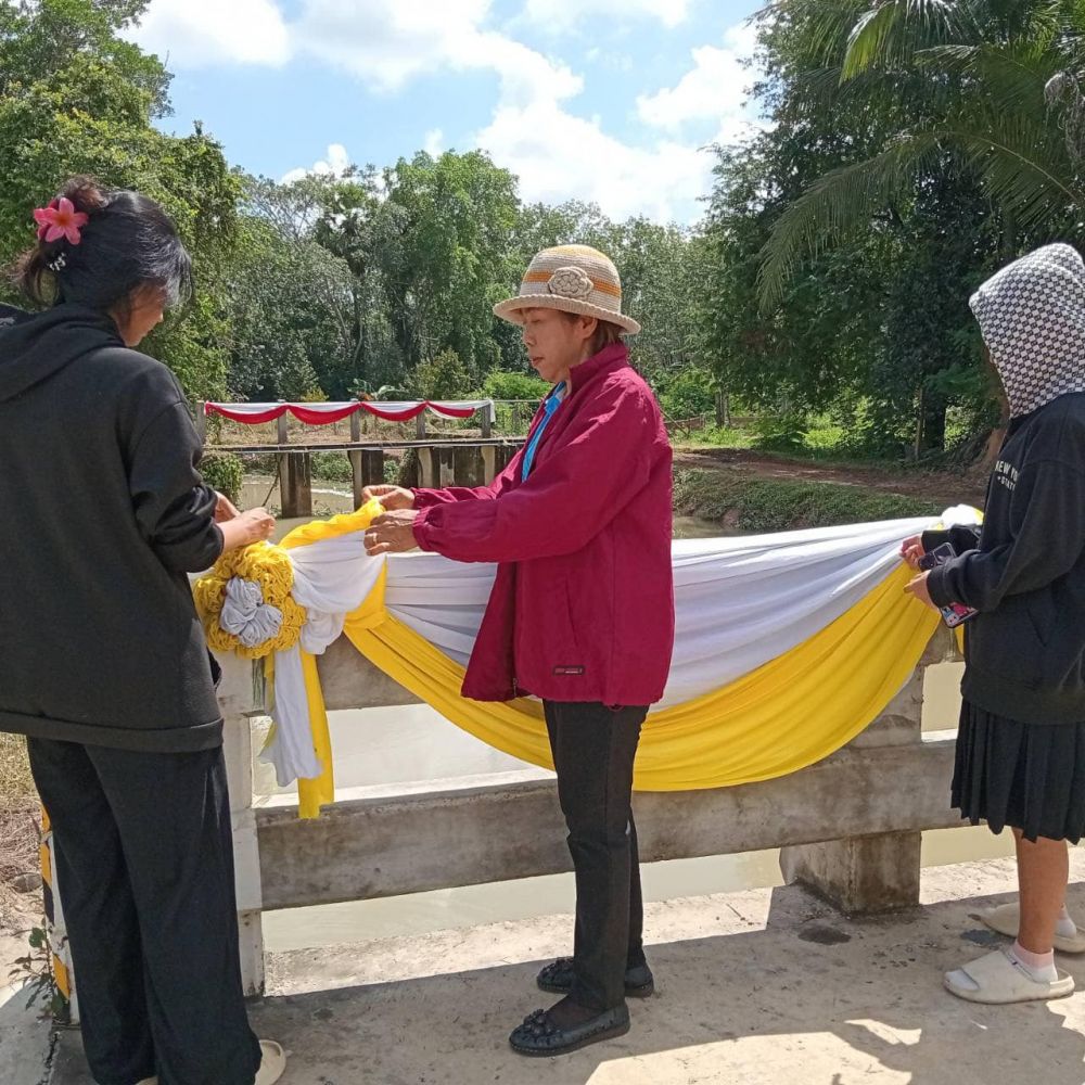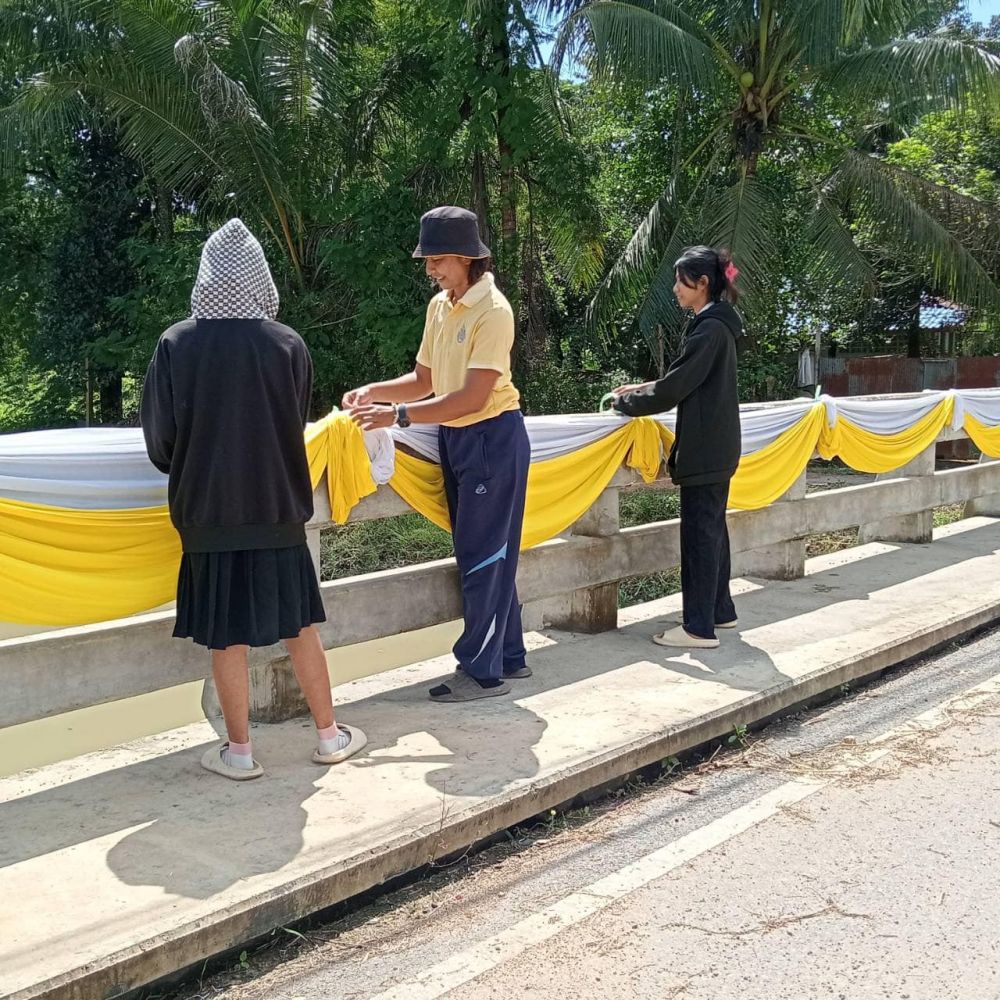 บ้านหาร นำนักศึกษา เรียนรู้การผูกผ้าบริเวณท่าน้ำคลองหนองหม่วง ม.3 ต.ท่าช้าง อ.บางกล่ำ เพื่อเตรียมสถานที่ในการจัดงานวันลอยกระทง