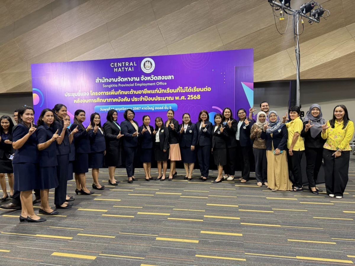 นางชุติมา พูลเกิด ผู้อำนวยการศูนย์ส่งเสริมการเรียนรู้ระดับอำเภอบางกล่ำ พร้อมด้วยคณะครู สกร.ระดับอำเภอบางกล่ำ เข้าร่วมประชุมชี้แจง โครงการเพิ่มทักษะด้านอาชีพแก่นักเรียนที่ไม่ได้เรียนต่อ หลังจบการศึกษาภาคบังคับ ประจำปีงบประมาณ พ.ศ. 2568 ณ ฮอลล์ ชั้น 5 เซนทรัลหาดใหญ่ จังหวัดสงขลา