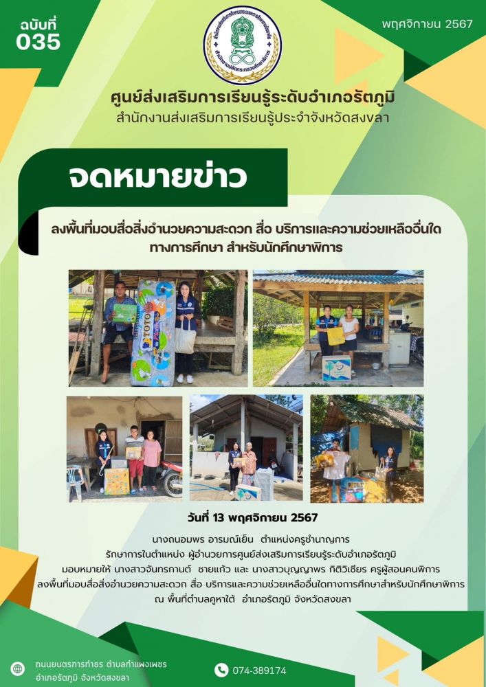 ครูผู้สอนคนพิการ ลงพื้นที่มอบสื่อสิ่งอำนวยความสะดวก สื่อ บริการและความช่วยเหลืออื่นใดทางการศึกษาสำหรับนักศึกษาพิการ