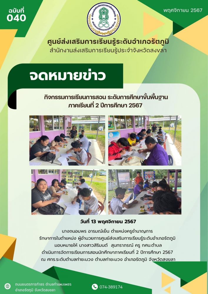 นางสาวสิริมนต์ สุนทราภรณ์ ครู กศน.ตำบลดำเนินการจัดการเรียนการสอนนักศึกษาภาคเรียนที่ 2 ปีการศึกษา 2567 ณ ศกร.ระดับตำบลท่าชะมวง