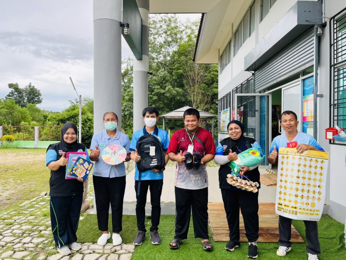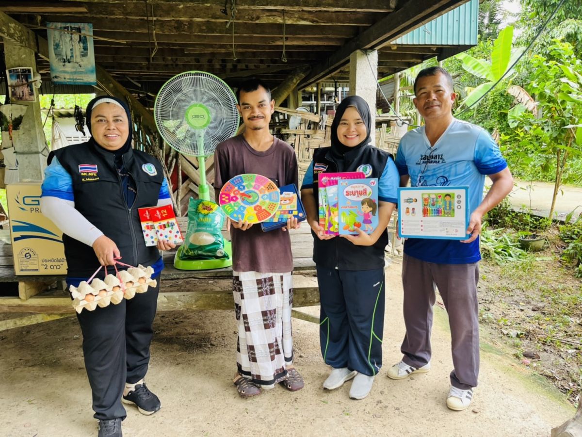 ให้กับ นักศึกษาคนพิการ กลุ่มเป้าหมายพิเศษ 5 ที่รับผิดชอบ จำนวน 10 คน ในพื้นที่ ตำบลบ้านนาและสะพานไม้แก่นโดยมี คณะครู ศกร.ระดับตำบลบ้านนา ศูนย์สุขภาพลางา ผู้ช่วยผู้ใหญ่บ้าน ม.7 ต.บ้านนา และนางนูรีซาน โอะโร ครูที่ปรึกษา ศกร.ระดับตำบลสะพานไม้แก่น ร่วมมอบสื่อดังกล่าว
