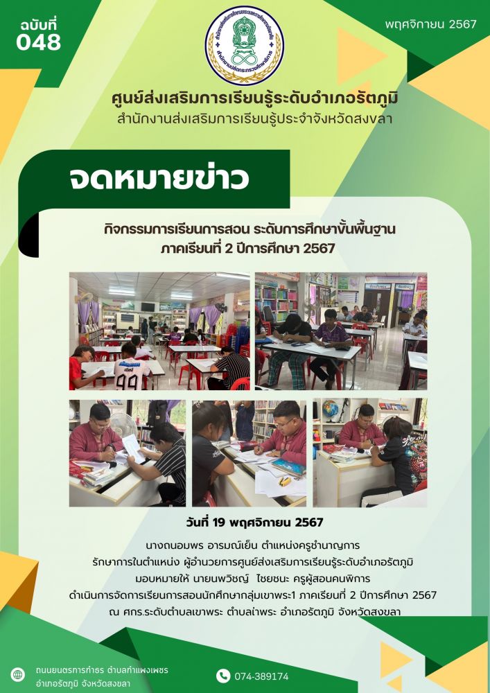 นายนพวิชญ์ ไชยชนะ ครูผู้สอนคนพิการ ดำเนินการจัดการเรียนการสอนนักศึกษากลุ่มเขาพระ1