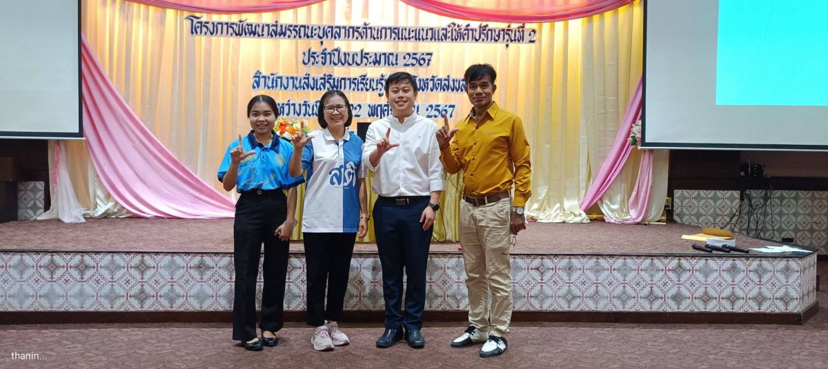 มอบหมายให้นายธนกฤต สุวรรณศรี ครู กศน.ตำบล และนางสาวธนรัตน์ ดิสระ ครู กศน.ตำบล เข้าร่วมโครงการพัฒนาสมรรถนะบุคลากรด้านการแนะแนวและ ให้คำปรึกษา รุ่นที่ 2 ประจำปี พ.ศ. 2567 ณ โรงแรมเดอะฟลอร่าเมย์รีสอร์ท ตำบลพะวง อำเภอเมืองสงขลา จังหวัดสงขลา