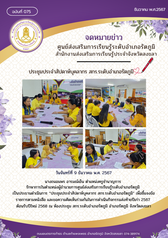 ประชุมประจำสัปดาห์บุคลากร สกร.ระดับอำเภอรัตภูมิ