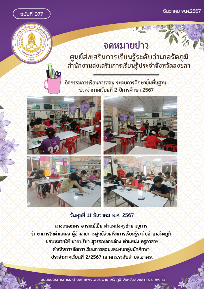 กิจกรรมการเรียนการสอน ระดับการศึกษาขั้นพื้นฐาน ประจำภาคเรียนที่2/2567