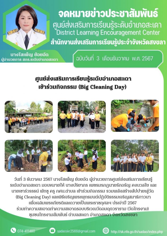 ศูนย์ส่งเสริมการเรียนรู้ระดับอำเภอสะเดา เข้าร่วมกิจกรรม (Big Cleaning Day)