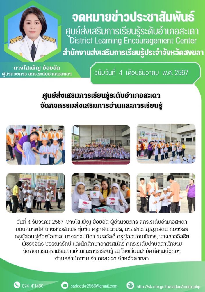ศูนย์ส่งเสริมการเรียนรู้ระดับอำเภอสะเดา จัดกิจกรรมส่งเสริมการอ่านและการเรียนรู้