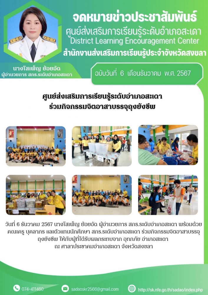 ศูนย์ส่งเสริมการเรียนรู้ระดับอำเภอสะเดา ร่วมกิจกรรมจิตอาสาบรรจุถุงยังชีพ