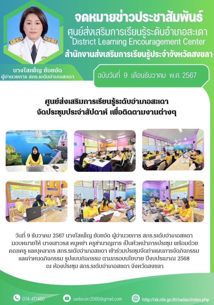 ศูนย์ส่งเสริมการเรียนรู้ระดับอำเภอสะเดา จัดประชุมประจำสัปดาห์ เพื่อติดตามงานต่างๆ