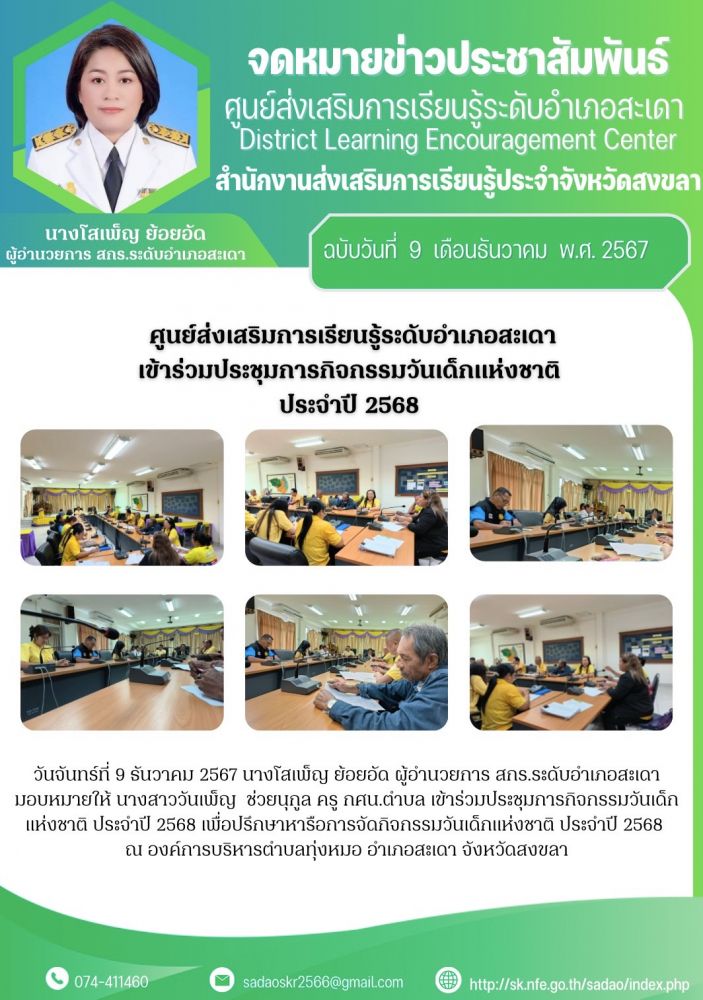 ศูนย์ส่งเสริมการเรียนรู้ระดับอำเภอสะเดา เข้าร่วมประชุมการกิจกรรมวันเด็กแห่งชาติ ประจำปี 2568