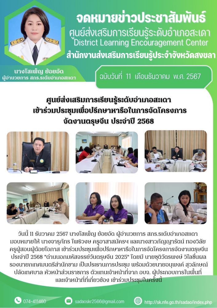 ศูนย์ส่งเสริมการเรียนรู้ระดับอำเภอสะเดา เข้าร่วมประชุมเพื่อปรึกษาหารือในการจัดโครงการ จัดงานตรุษจีน ประจำปี 2568
