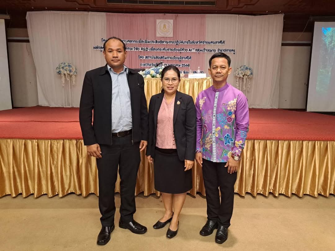 นางจีรวรรณ์ ปัตตะพัฒน์ ผู้อำนวยการศูนย์ส่งเสริมการเรียนรู้ระดับอำเภอจะนะมอบหมายให้ นางลัดดารัตน์ พรุเพชรแก้ว นายอิสมะแอน ถวดีกุล และนายมู่หำหมัด บินล่าเต๊ะ เข้าร่วมโครงการพัฒนาบุคลากรเพื่อเพิ่มประสิทธิภาพการปฏิบัติงานในจังหวัดชายแดนภาคใต้ หลักสูตร “การพัฒนาทักษะวิจัย R&D เพื่อยกระดับการเรียนรู้ด้วย AI โดยมี ผศ.ดร.ชวลิต เกิดทรัพย์ มหาวิทยาลัยสงขลานครินทร์ วิทยาเขตปัตตานี และ ดร.พงษ์รัตน์ ธรรมชาติ เป็นวิทยากร