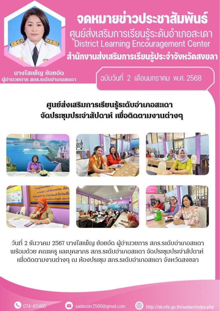 ศูนย์ส่งเสริมการเรียนรู้ระดับอำเภอสะเดา จัดประชุมประจำสัปดาห์ เพื่อติดตามงานต่างๆ