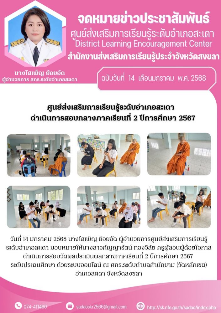 ศูนย์ส่งเสริมการเรียนรู้ระดับอำเภอสะเดา ดำเนินการสอบกลางภาคเรียนที่ 2 ปีการศึกษา 2567