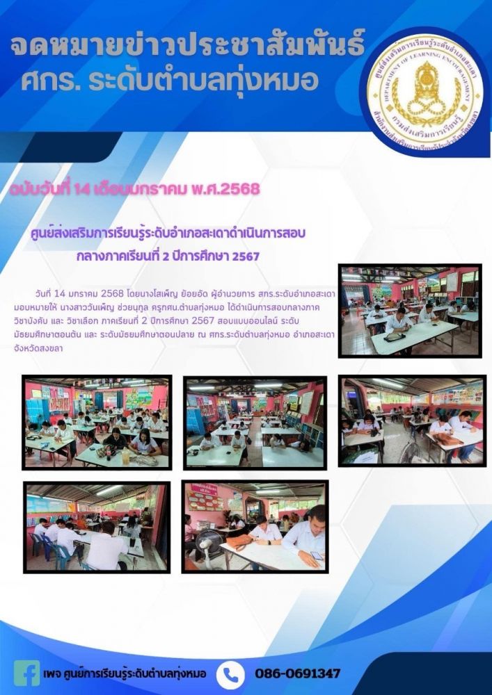 ศูนย์ส่งเสริมการเรียนรู้ระดับอำเภอสะเดาดำเนินการสอบ กลางภาคเรียนที่ 2 ปีการศึกษา 2567