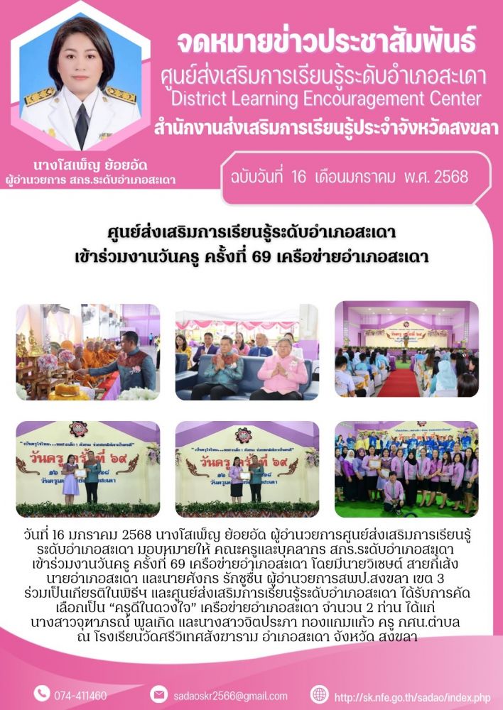 ศูนย์ส่งเสริมการเรียนรู้ระดับอำเภอสะเดา เข้าร่วมงานวันครู ครั้งที่ 69 เครือข่ายอำเภอสะเดา