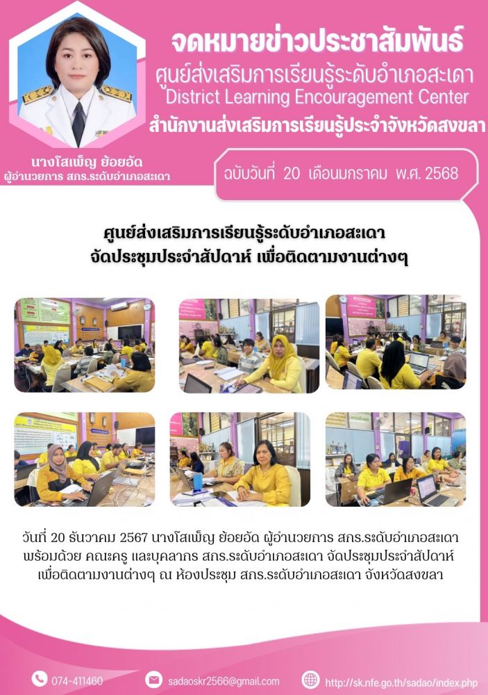 ศูนย์ส่งเสริมการเรียนรู้ระดับอำเภอสะเดา จัดประชุมประจำสัปดาห์ เพื่อติดตามงานต่างๆ