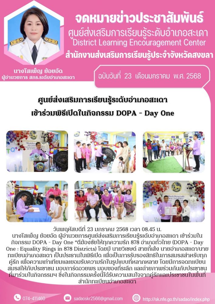 ศูนย์ส่งเสริมการเรียนรู้ระดับอำเภอสะเดา เข้าร่วมพิธีเปิดในกิจกรรม DOPA - Day One