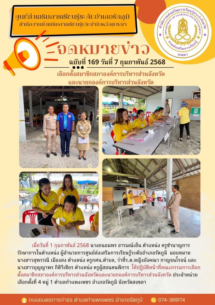 เมื่อวันที่ 1 กุมภาพันธ์ 2568 นางถนอมพร อารมณ์เย็น ตำแหน่ง ครูชำนาญการ รักษาการในตำแหน่ง ผู้อำนวยการศูนย์ส่งเสริมการเรียนรู้ระดับอำเภอรัตภูมิ มอบหมาย