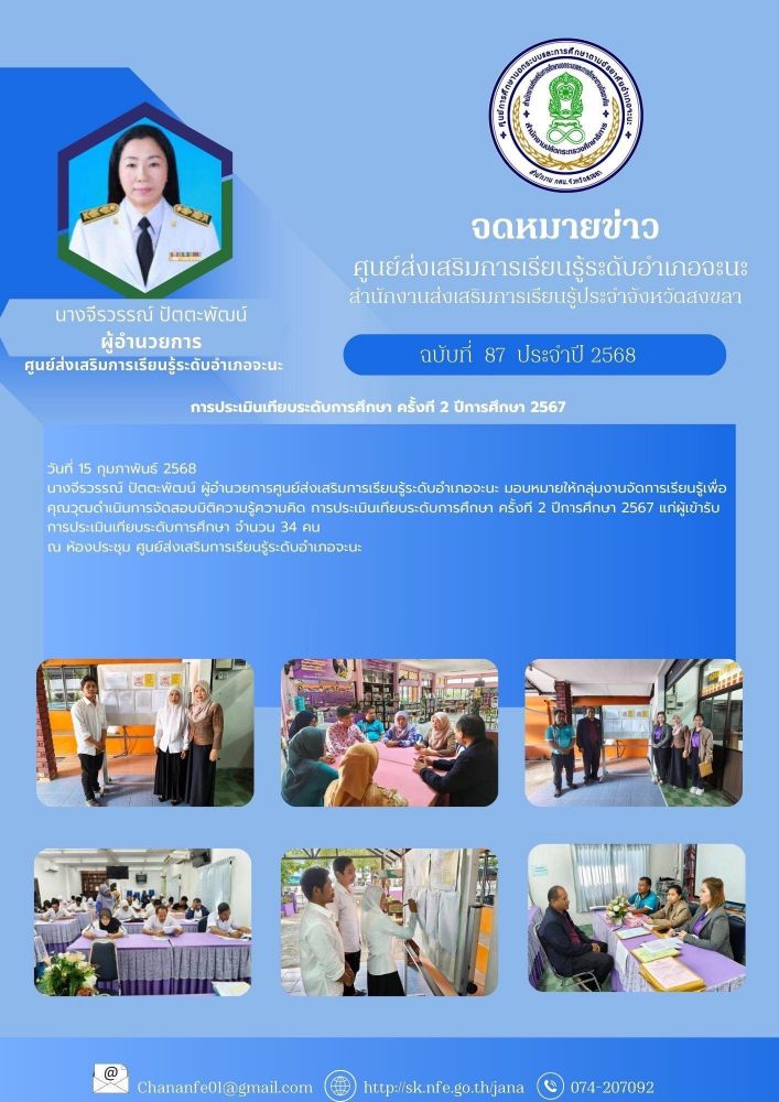 นางจีรวรรณ์ ปัตตะพัฒน์ ผู้อำนวยการศูนย์ส่งเสริมการเรียนรู้ระดับอำเภอจะนะ มอบหมายให้กลุ่มงานจัดการเรียนรู้เพื่อคุณวุฒดำเนินการจัดสอบมิติความรู้ความคิด การประเมินเทียบระดับการศึกษา ครั้งที 2 ปีการศึกษา 2567 แก่ผู้เข้ารับการประเมินเทียบระดับการศึกษา จำนวน 34 คน