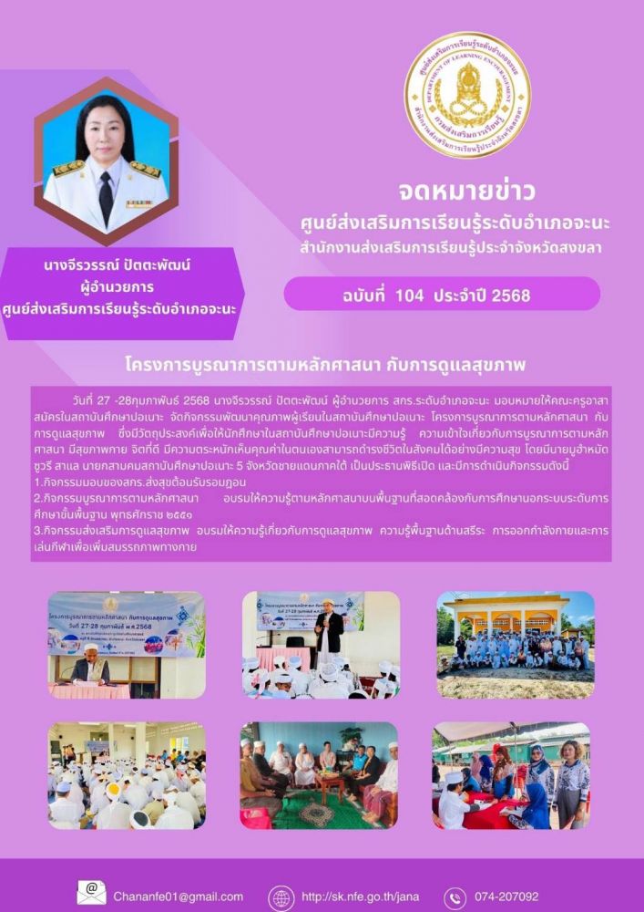 2.กิจกรรมบูรณาการตามหลักศาสนา อบรมให้ความรู้ตามหลักศาสนาบนพื้นฐานที่สอดคล้องกับการศึกษานอกระบบระดับการศึกษาขั้นพื้น