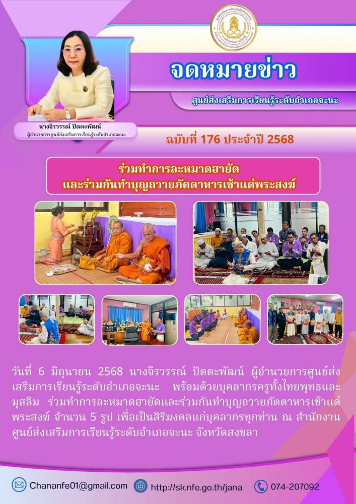 ร่วมทำการละหมาดฮายัด และร่วมกันทำบุญถวายภัตตาหารเช้าแด่พระสงฆ์