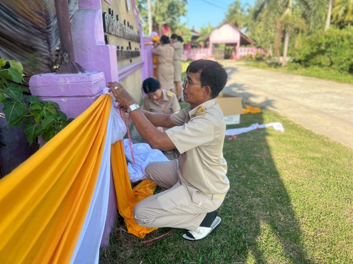 30 มิถุนายน 2568 นางสิริมา คล่องแคล่ว ครู รักษาการในตำแหน่ง ผู้อำนวยการศูนย์ส่งเสริมการเรียนรู้ระดับอำเภอกระแสสินธุ์ มอบหมายให้หัวหน้างานฝ่ายอาคารสถานที่ และบุคลากร ประดับผ้าระบายสีเหลืองร่วมกับผ้าระบายสีขาว