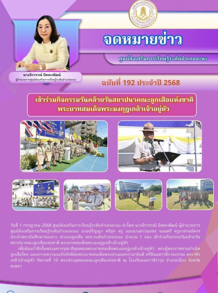 ศูนย์ส่งเสริมการเรียนรู้ระดับอำเภอจะนะนำกองลูกเสือ สกร.ระดับอำเภอจะนะ จำนวน 1 กอง เข้าร่วมกิจกรรมวันคล้ายวันสถาปนาคณะลูกเสือแห่งชาติ พระบาทสมเด็จพระมงกุฎเกล้าเจ้าอยู่หัว