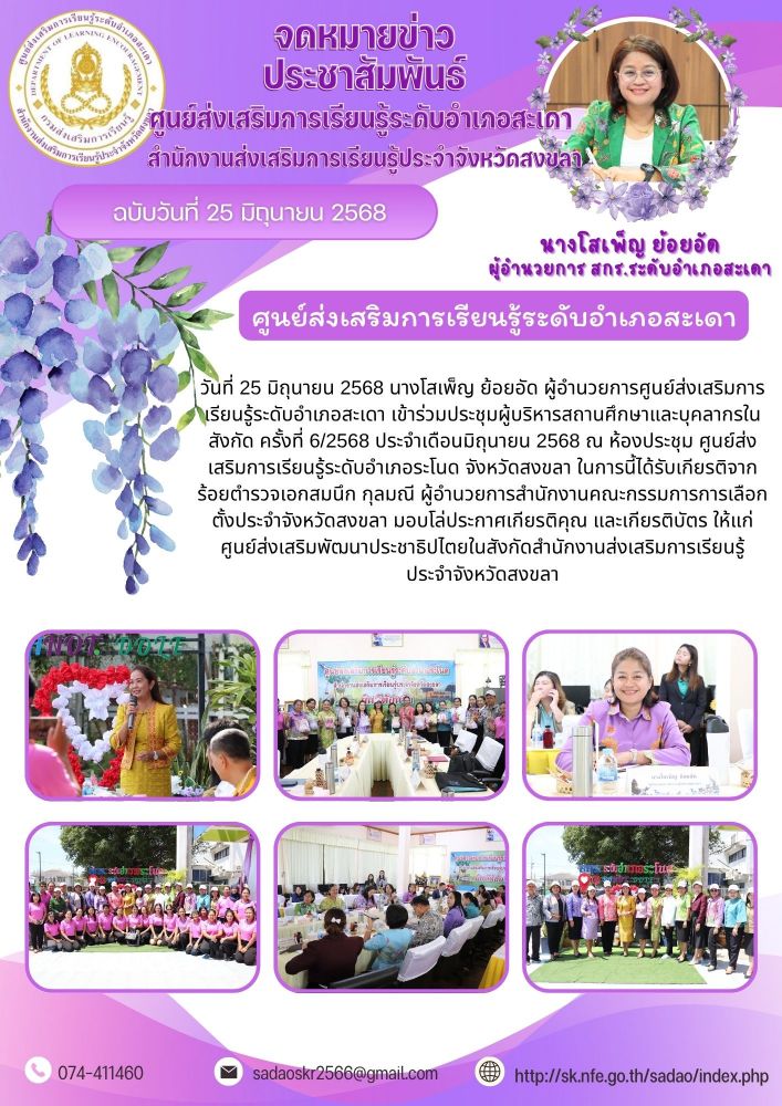 ศูนย์ส่งเสริมการเรียนรู้ระดับอำเภอสะเดา เข้าร่วมประชุมผู้บริหารสถานศึกษาและบุคลากรในสังกัด ครั้งที่ 6/2568 ประจำเดือนมิถุนายน 2568