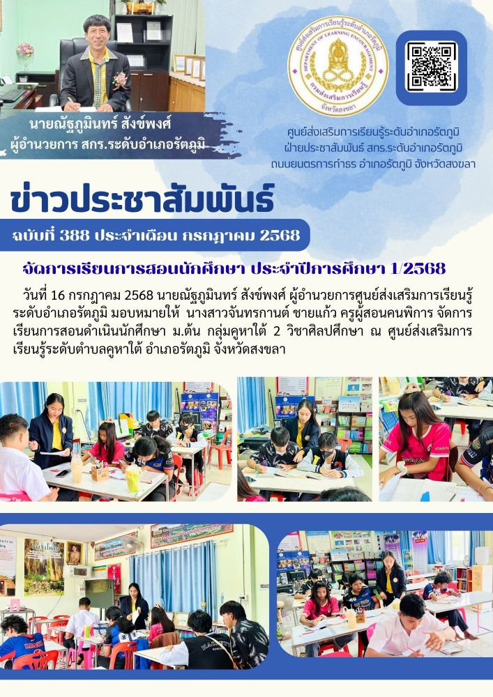 วันที่ 16 กรกฎาคม 2568 นายณัฐภูมินทร์ สังข์พงศ์ ผู้อำนวยการศูนย์ส่งเสริมการเรียนรู้ระดับอำเภอรัตภูมิ มอบหมายให้ นางสาวจันทรกานต์ ชายแก้ว ครูผู้สอนคนพิการ จัดการเรียนการสอนดำเนินนักศึกษา ม.ต้น กลุ่มคูหาใต้ 2 วิชาศิลปศึกษา ณ ศูนย์ส่งเสริมการเรียนรู้ระดับตำบลคูหาใต้ อำเภอรัตภูมิ จังหวัดสงขลา