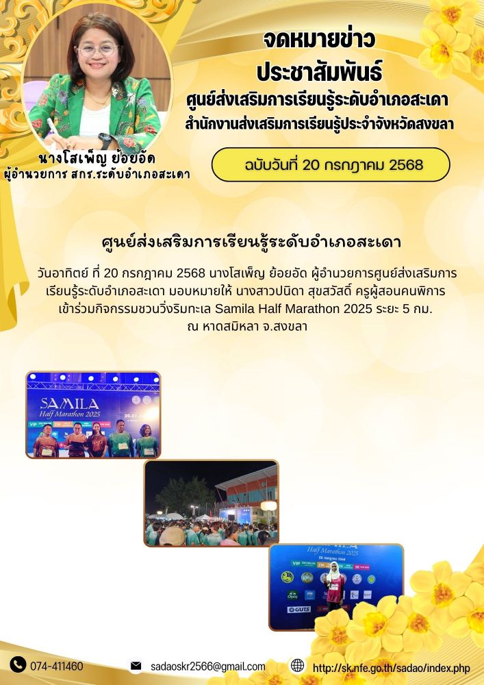 ศูนย์ส่งเสริมการเรียนรู้ระดับอำเภอสะเดา เข้าร่วมกิจกรรมชวนวิ่งริมทะเล Samila Half Marathon 2025 ระยะ 5 กม.