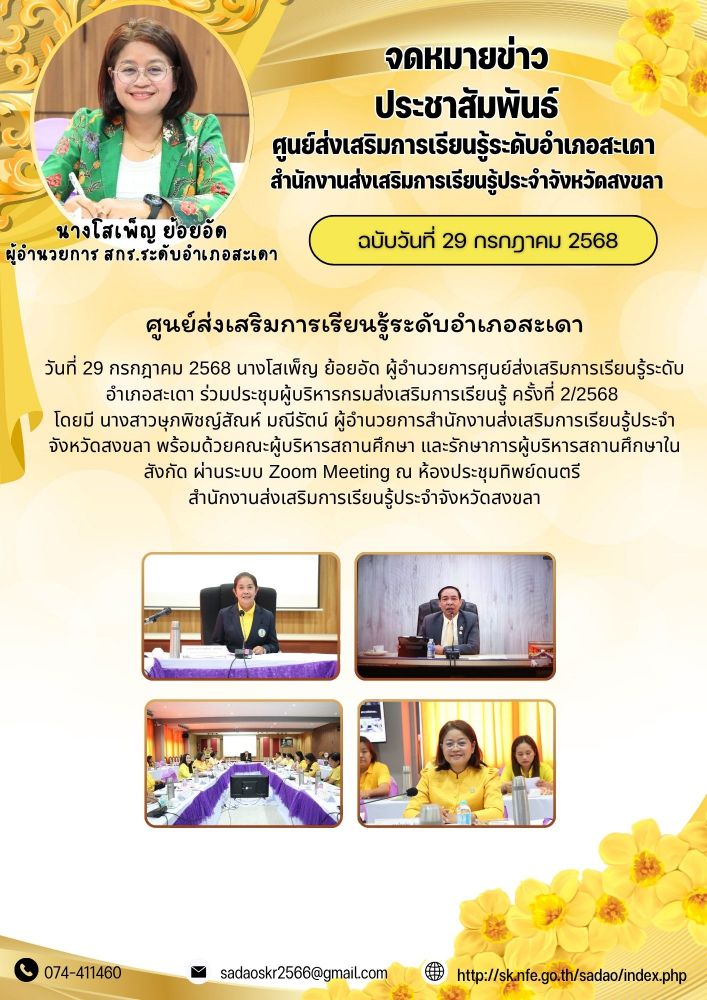 ศูนย์ส่งเสริมการเรียนรู้ระดับอำเภอสะเดาร่วมประชุมผู้บริหารกรมส่งเสริมการเรียนรู้ ครั้งที่ 2/2568