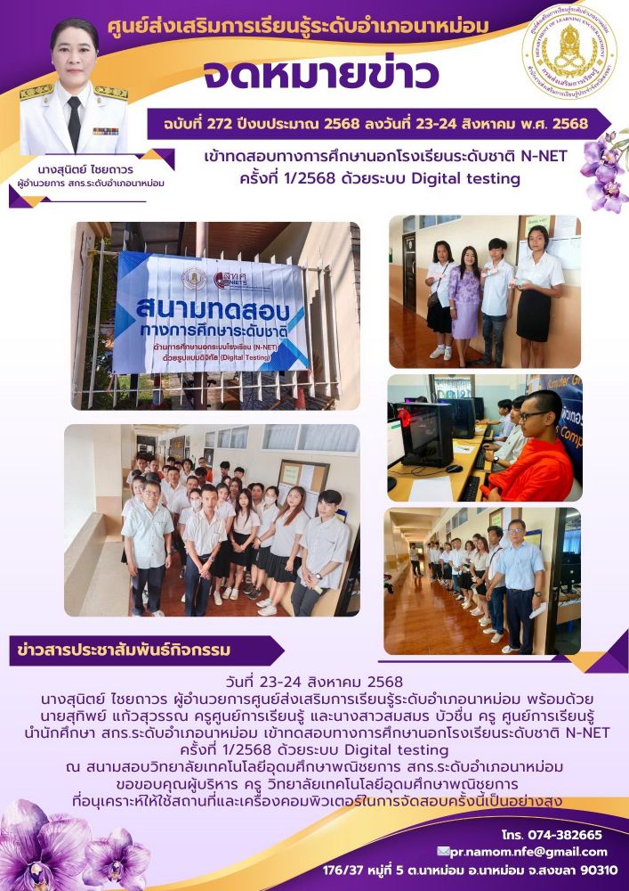 เข้าทดสอบทางการศึกษานอกโรงเรียนระดับชาติ N-NET ครั้งที่ 1/2568 ด้วยระบบ Digital testing