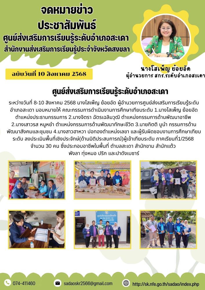 ศูนย์ส่งเสริมการเรียนรู้ระดับอำเภอสะเดา ลงประเมินพื้นที่เชิงประจักษ์(ด้านมิติประสบการณ์)ผู้เข้าเทียบระดับ ภาคเรียนที่1/2568
